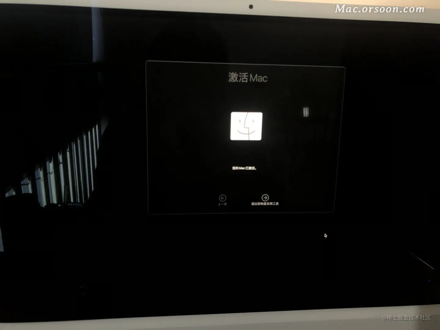 9、您的 Mac 将开始激活;在此期间,设备需要连接至互联网。待 Mac 激活后,请点按“退出到恢复实用工具”。