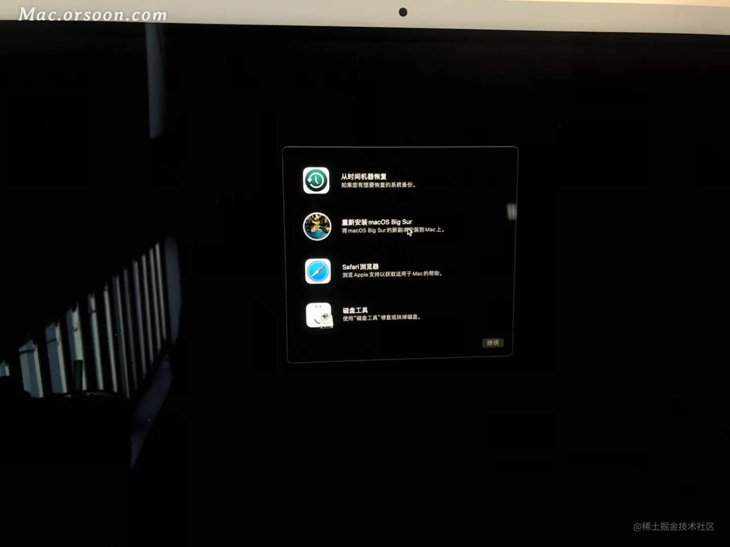 11、实用工具窗口中选择【重新安装 macOS Big Sur】,然后按照屏幕上的说明步骤,直至安装完成!