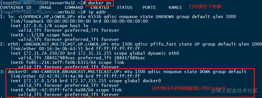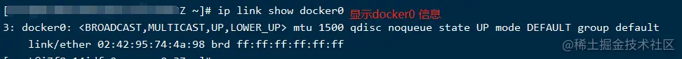 在主机上可以执行命令ip link show docker0查看: