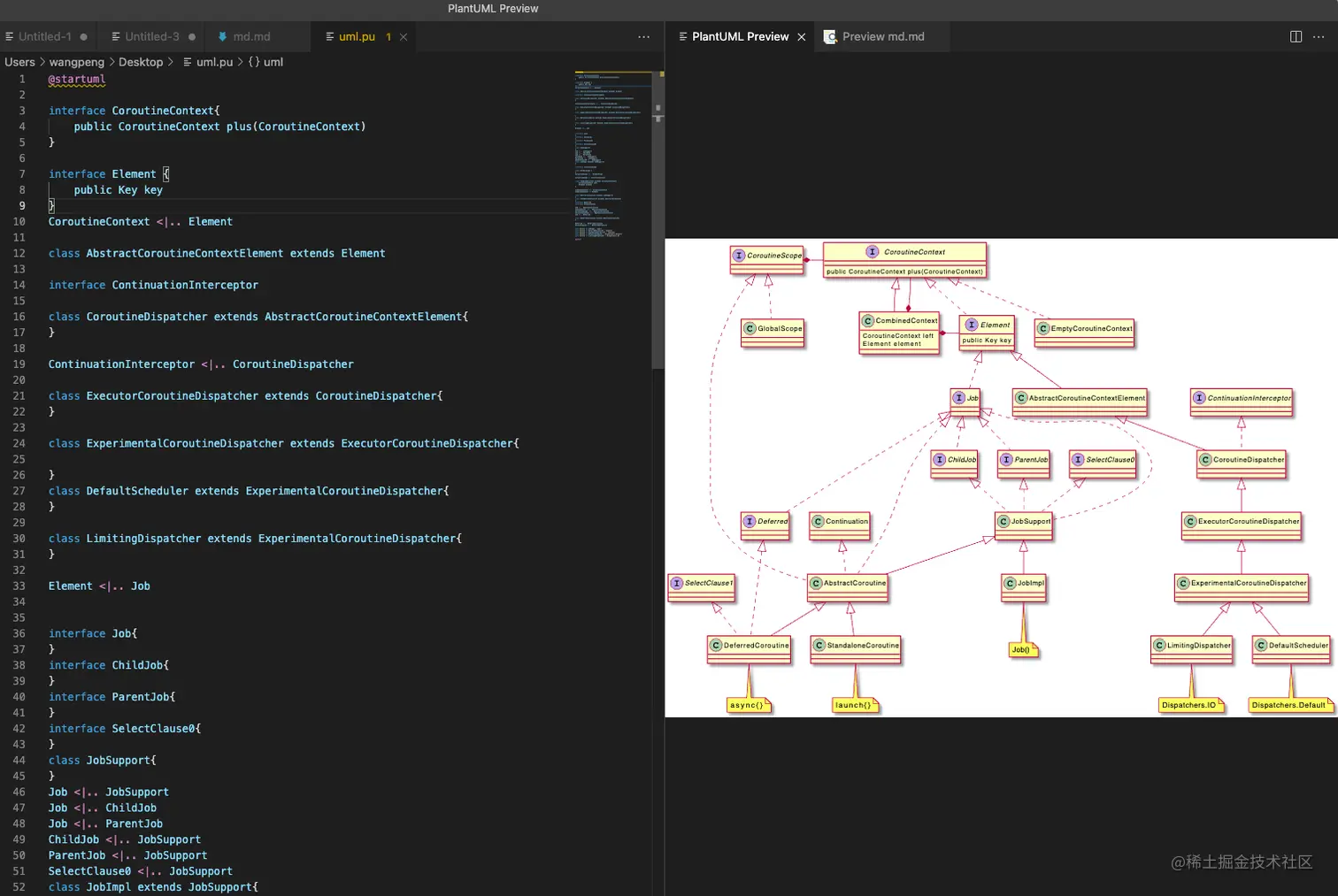 之后就可以在 VSCode 中一边“写” UML 一边预览了。
