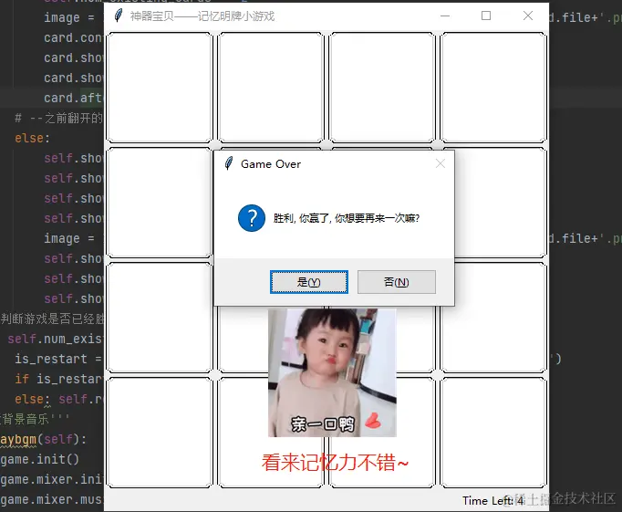 is_restart = messagebox.askyesno('Game Over', '胜利, 你赢了, 你想要再来一次嘛?')