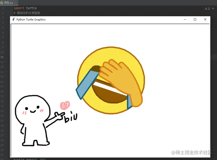 科普了这么多, 那今天就教教大家是怎么用Turtle画出这个表情包的吧~