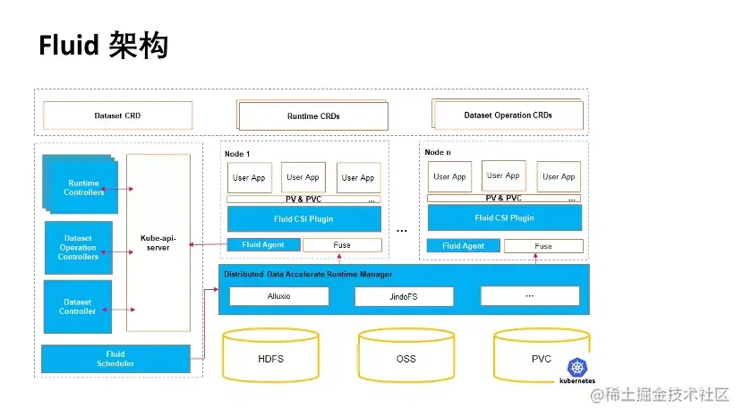 - 提供存储无感知的数据对象-数据集(Dataset):通过自定义资源对象 (Custom Resource Definition)实现对不同存储系统的统一抽象定义与管理,支持可观测性和弹性伸缩。