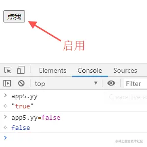 修改 Vue 实例的 yy 值为 false: