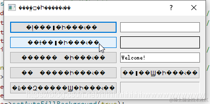 Qt5显示中文乱码的解决方法 AI浩 2021-09-28 465 阅读1分钟 QT5控件的中文字符显示乱码如图所示: 解决的方法: 在头文件的下面加上: #pragma execution_character_set("utf-8") 运行结果: