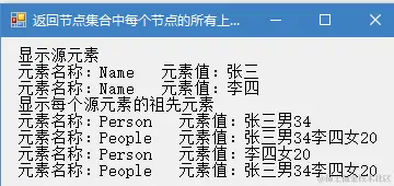 label1.Text += "显示每个源元素的祖先元素\n";