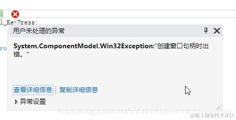 有人提出解决问题的思路是重写报错控件的CreateHandle()方法,代码如下: