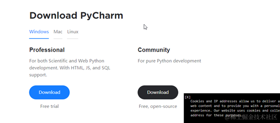 登录官网:www.jetbrains.com/pycharm/dow…,选择安装的版本。