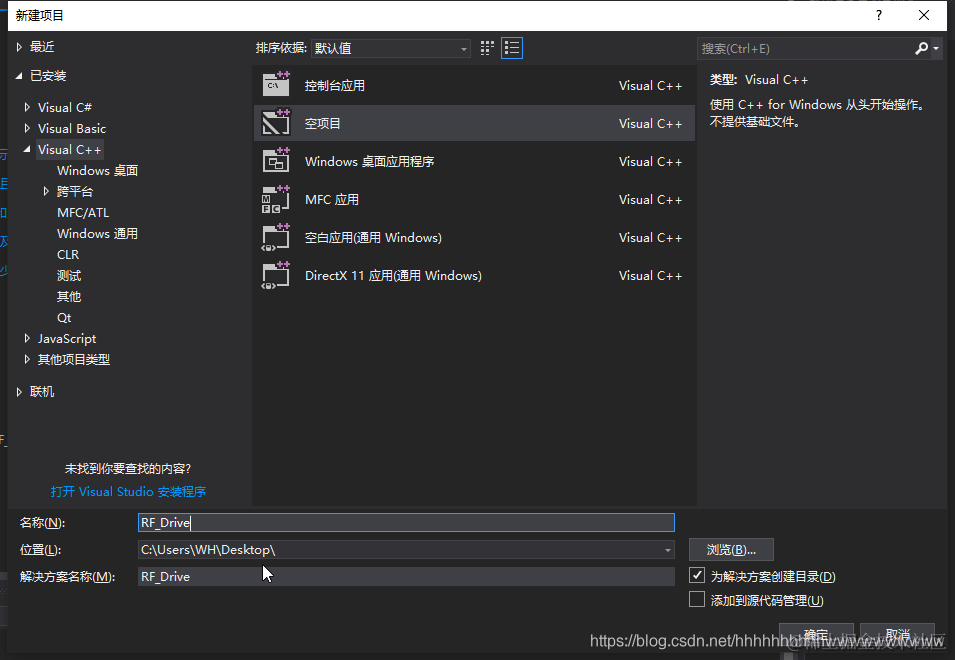 - 新建空项目,命名为RF_Drive,这个作为底层的驱动。