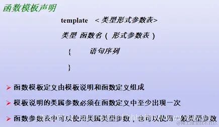 template关键字用于声明开始泛型编程,typename关键字用于声明泛型类型。