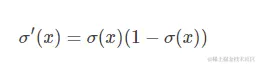 ps: sigmoid函数之所以在之前很长一段时间作为神经网络激活函数(现在大家基本都用Relu了),一个很重要的原因是sigmoid函数的导数很容易计算,可以用自身表示: