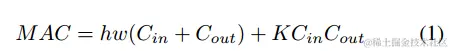 卷积后保持相同数量的通道:为了评估低端设备的计算成本,我们还必须考虑功耗,影响功耗的最大因素是内存访问成本(MAC)。通常,用于卷积运算的MAC计算方法如下: