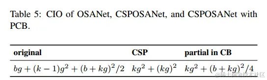 最小化卷积输入/输出(CIO):CIO是可以测量DRAM IO状态的指示器。表5列出了OSA,CSP和我们设计的CSPOSANet的CIO。