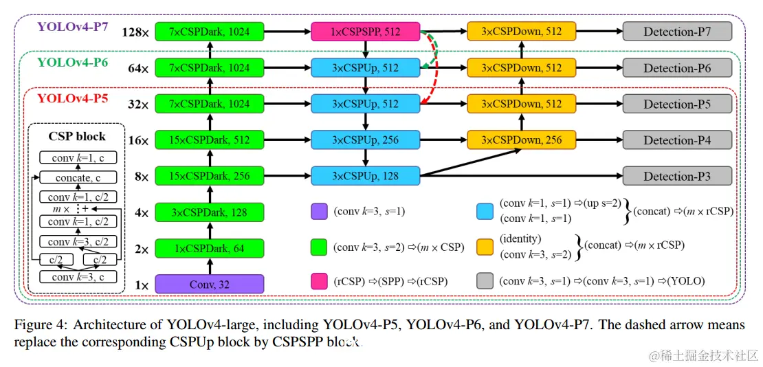 YOLOv4-large是专为云GPU设计的,其主要目的是实现物体检测的高精度。我们设计了完整的CSP模型YOLOv4-P5,并将其扩展到YOLOv4-P6和YOLOv4-P7。
