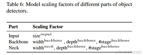由于我们希望在放大CNN模型后提高准确性并保持实时推理速度,因此在执行复合缩放时,必须在对象检测器的许多缩放因子之间找到最佳组合。通常,我们可以调整对象检测器的输入,主干和颈部的比例因子。可以调整的潜在缩放比例汇总于表6。