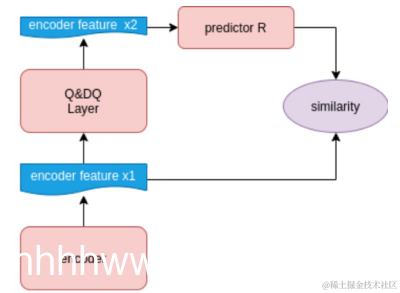上图同对比了误差恢复模块和自监督算法中的SimSiam[2]结构对比图。如果我们把量化误差看座位一种数据增强,那么量化误差修复这一块刚好可以看作一种自监督学习网络,同时存在一条支路在反向传播过程中能够计算出准确的梯度,让我们能够获得更好的encoder层。