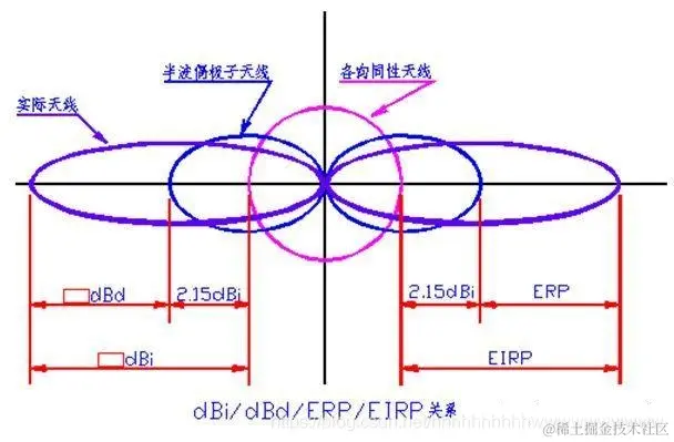 ERP:称为有效辐射功率 (effective radiated power )。无线电发射机供给天线的功率和在给定方向上该天线相对于半波偶极振子的增益的乘积。实际上用有效发射功率ERP代替EIRP来表示同半波耦极子天线相比的最大发射功率。注:耦极子天线具有1.64的增益(2.15dB),因此,ERP比EIRP低2.15dB。