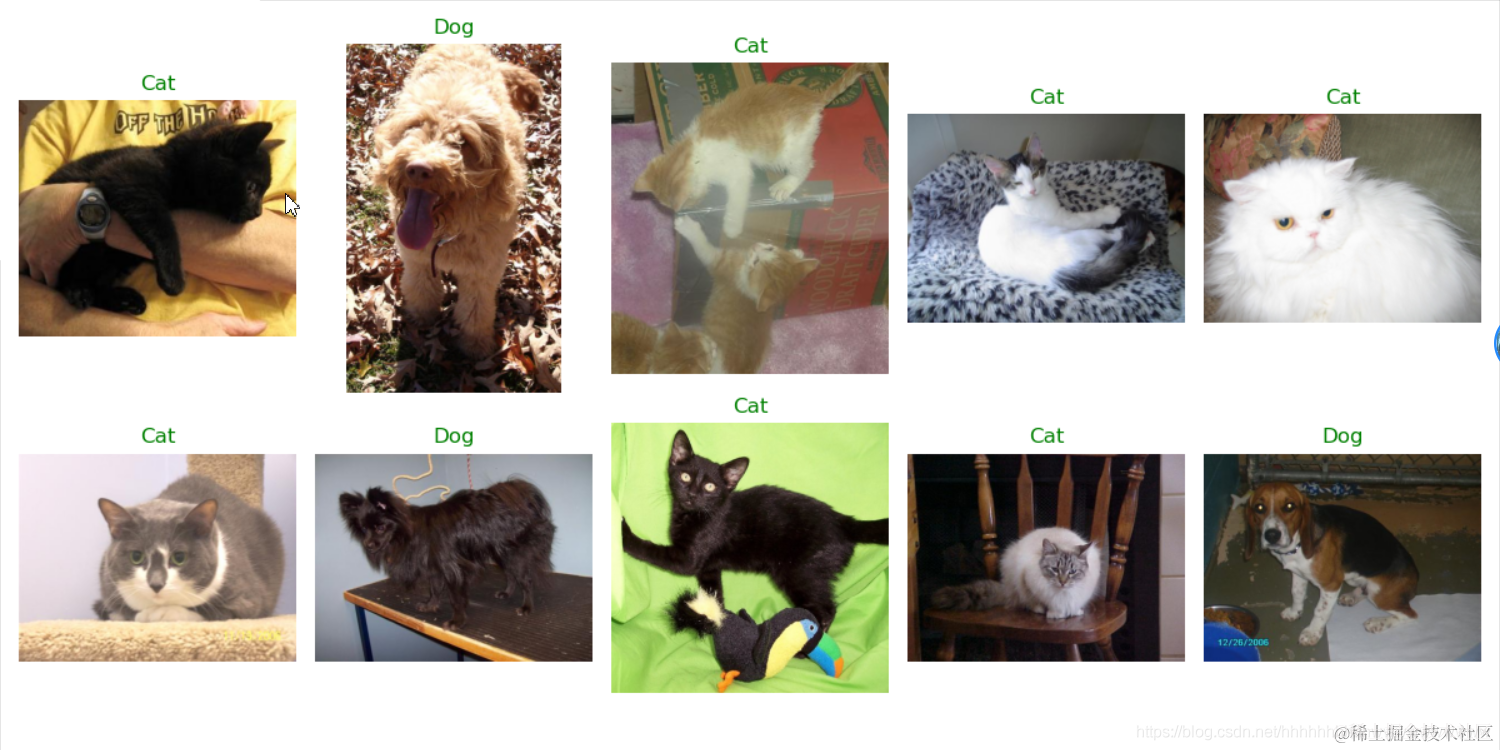 现在我们有了训练好的模型,因此让我们尝试预测一些图像的标签,看看这些预测是否正确。 首先我们制作CatsVsDogsInferenceDatasetPyTorch数据集。 它的代码类似于训练和验证数据集,但是推理数据集仅返回图像,而不返回关联的标签(因为在现实世界中,我们通常无权访问真实标签,并希望使用我们训练有素的模型来推断它们 )。