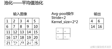 池化层又称为降采样层(Downsampling Layer),作用是对感受域内的特征进行筛选,提取区域内最具代表性的特征,能够有效地降低输出特征尺度,进而减少模型所需要的参数量。按操作类型通常分为最大池化(Max Pooling)、平均池化(Average Pooling)和求和池化(Sum Pooling),它们分别提取感受域内最大、平均与总和的特征值作为输出,最常用的是最大池化。