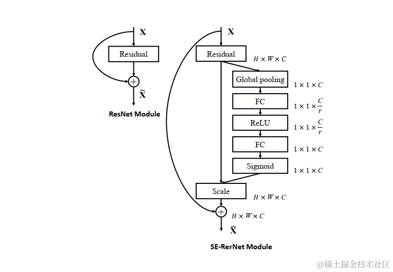 上述结构中,Squeeze 和 Excitation 是两个非常关键的操作,下面进行详细说明。