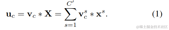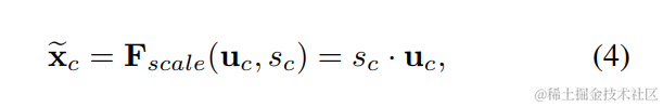 在得到s之后,就可以对原来的tensor U操作了,就是下面的公式4。也很简单,就是channel-wise multiplication,什么意思呢?是一个二维矩阵,