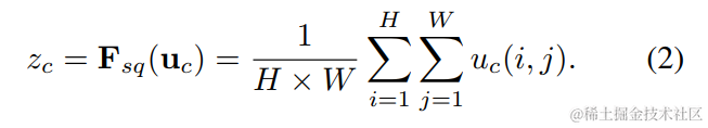 接下来就是Squeeze操作,公式非常简单,就是一个global average pooling: