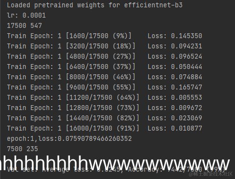 使用CrossEntropyLoss作为loss,模型采用efficientnet-B3。更改最后一层的全连接,将类别设置为2,然后将模型放到DEVICE。优化器选用Adam。