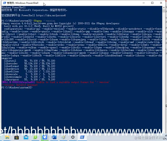 在PowerShell中输入:ffmpeg –version