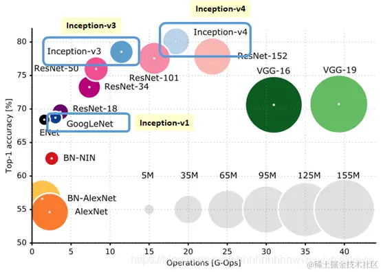 Inception不同版本的性能比较图
