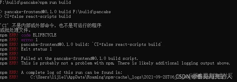 npm ERR! pancake-frontend@0.1.0 build: `CI=false react-scripts build`