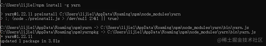 1.4 使用nodejs安装yarn