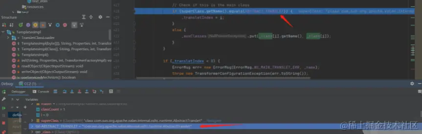 最终发现了newTransformer()->getTransletInstance()->defineTransletClasses()->loader.defineClass(_bytecodes[i]) ->_class[_transletIndex].newInstance()。也就是说利用这条链子来加载并实例化了一个类。(注意,我们采用javassist生成的类的方法是静态方法,类在实例化的时候就会调用。)流程差不多清楚了,现在来看看我们要实现这个链子还需要什么条件。