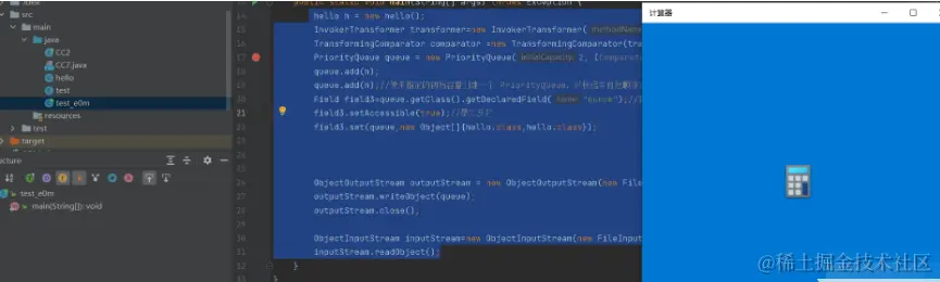 来验证一下,自己写一个类hello,里面的e0mlja方法会弹出计算器。