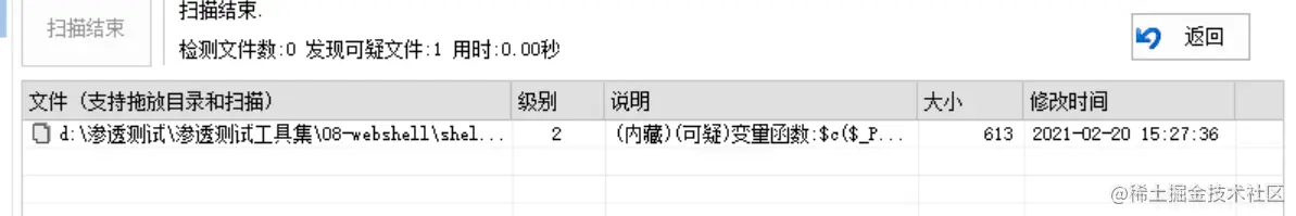 不错 报2级了 这就是沙盒型查杀和正则类查杀的明显区别 怎么过呢 用构造方法即可