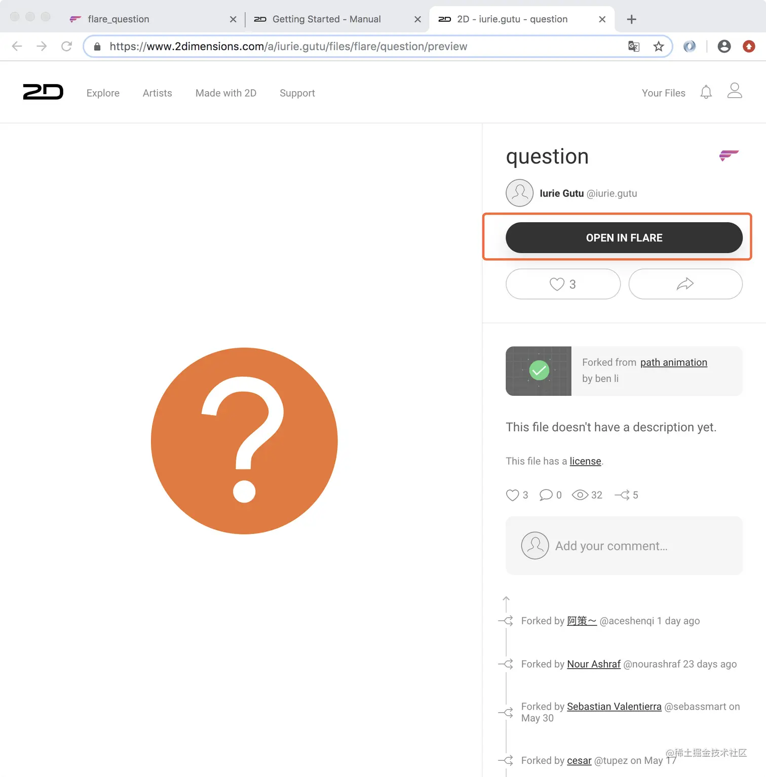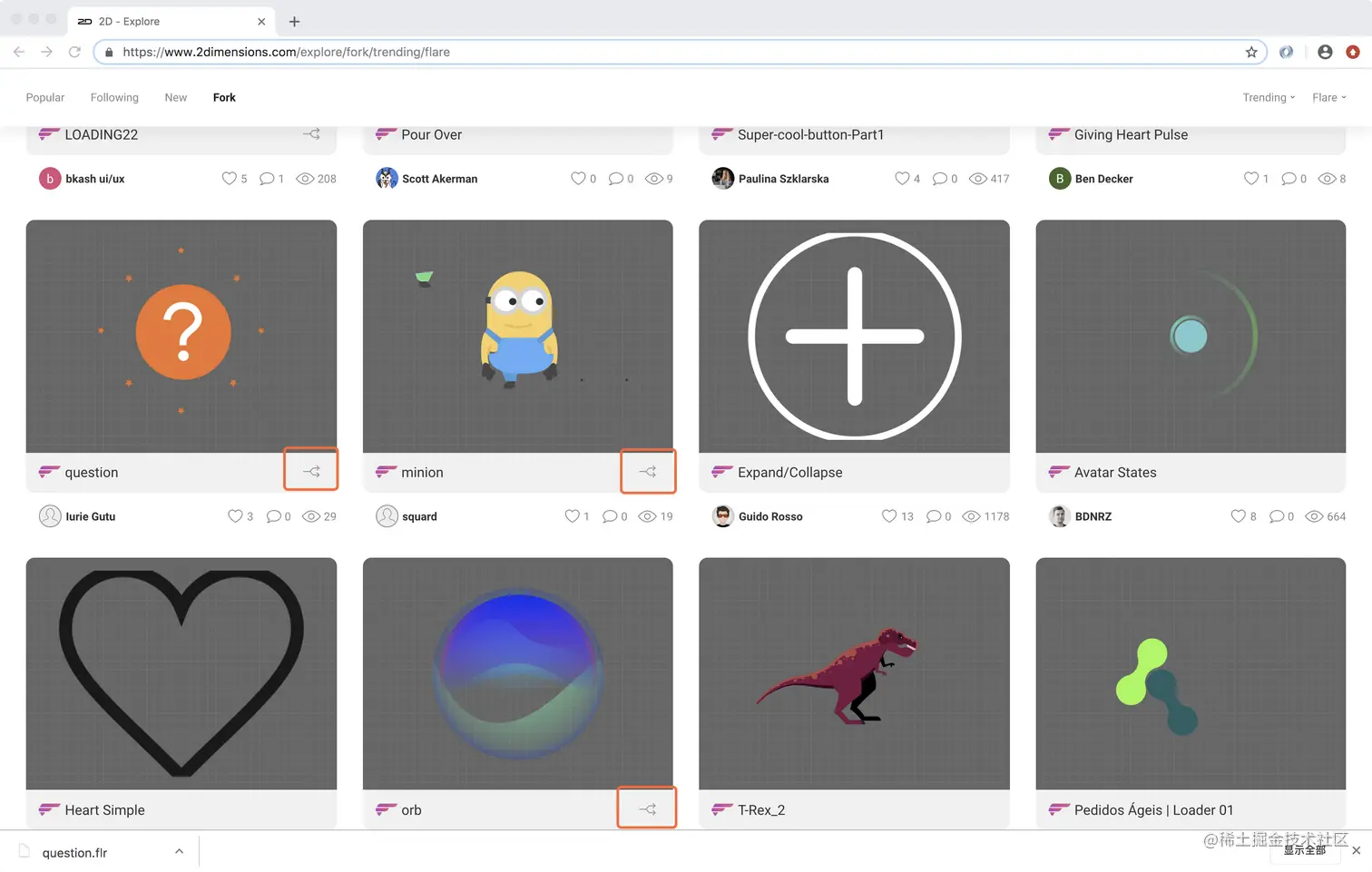 小菜刚开始学习 Flare,官网注册账号成功后,便可以访问 Nima 和 Flare 文件,Flare 动画包括两种;官网对于不同类型的资源有不同图标区分;