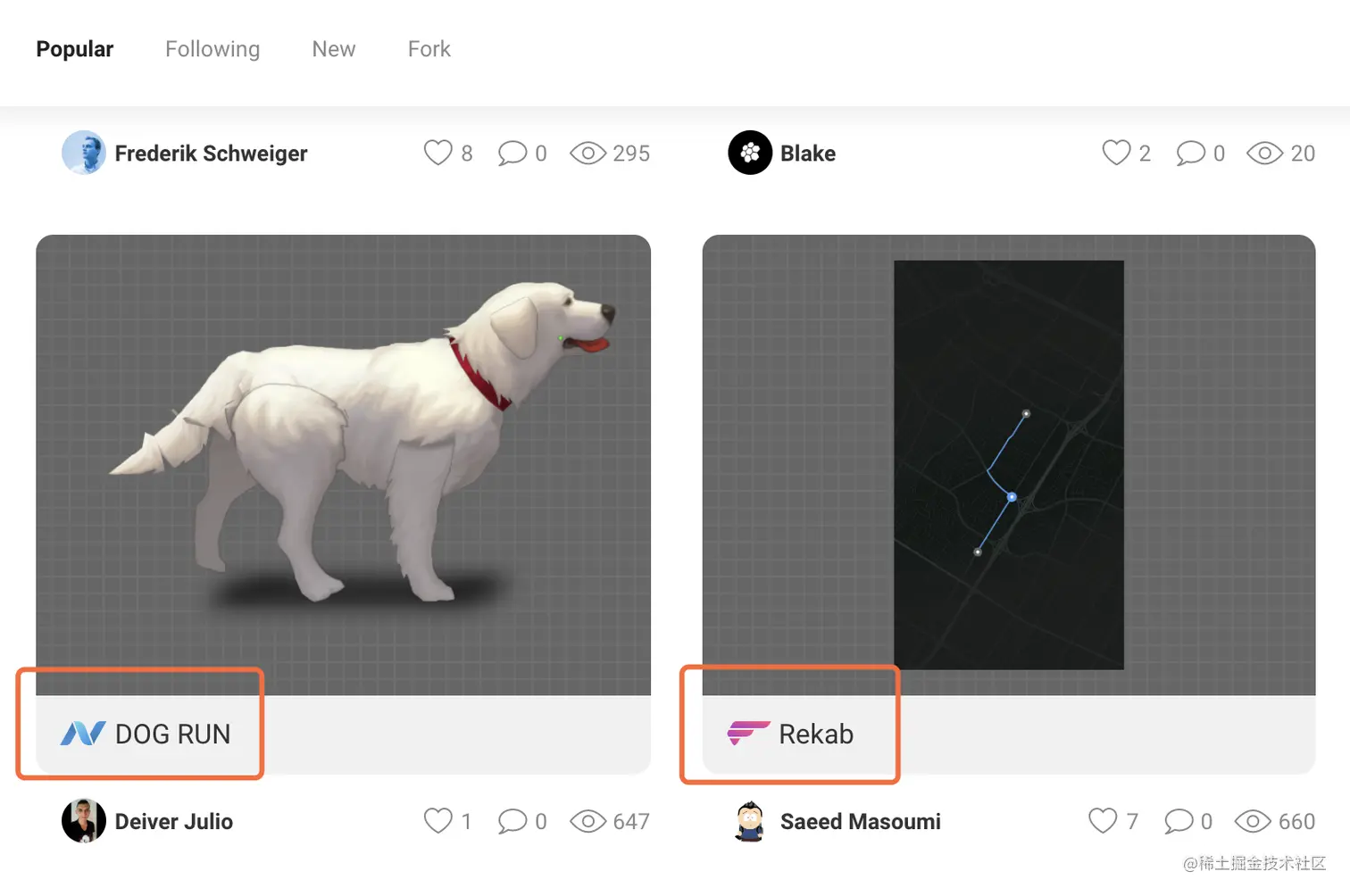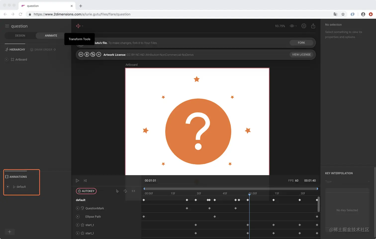 对于动画的制作过程,小菜暂不介绍,一是每个人的使用不同,二是小菜也在摸索过程,设计一个满意的动画需要精心设计与调整;资源区分公开和私有版,可根据右下角是否有 follow 箭头区分,小菜仅尝试一下开源的动画;