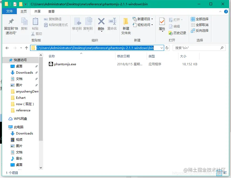 找到bin文件下的phantomjs.exe,复制文件夹路径,比如我就是:C:\Users\Administrator\Desktop\me\reference\phantomjs-2.1.1-windows\bin