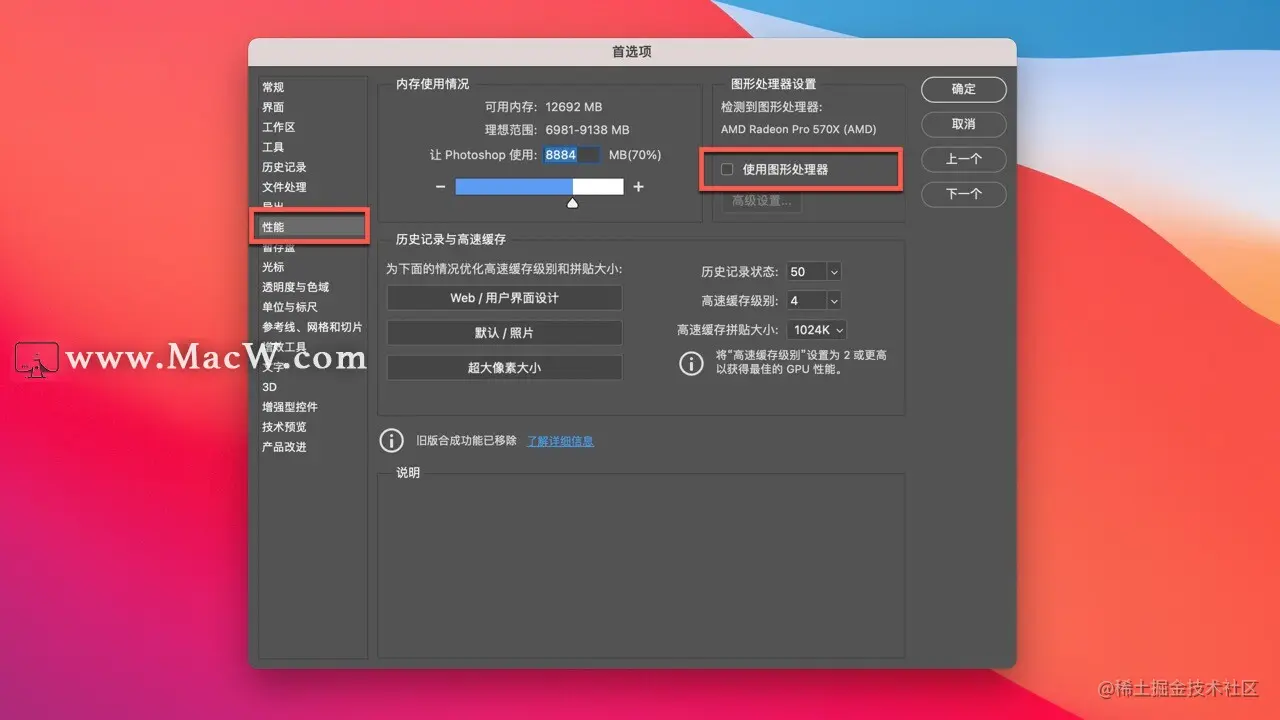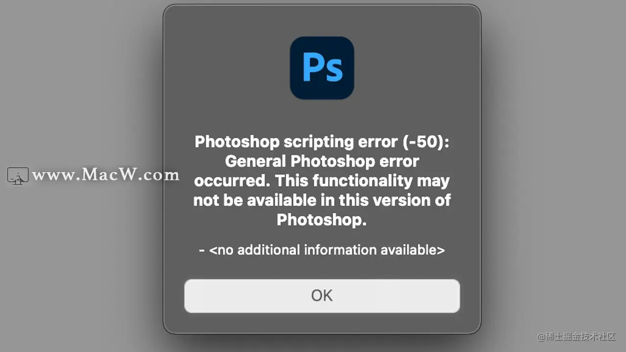 ps常见问题:Photoshop提示“脚本错误-50的解决办法 已注销 2021-09-29 753 阅读1分钟 Ps 处理图片时弹出“脚本错误(-50)一般 Photoshop 错误,此功能在此版本的中可能不可用”如何解决?跟着小编来看看设置方法吧。 提示错误,如下图: 1.在Ps的设置中,找到「首选项」-「性能」。 2.取消「使用图形处理器」点击「确认」。 以上就是Ps提示“脚本错误-50出现一般 Photoshop 错误,此功能在此版本的中可能不可用”的解决方法。