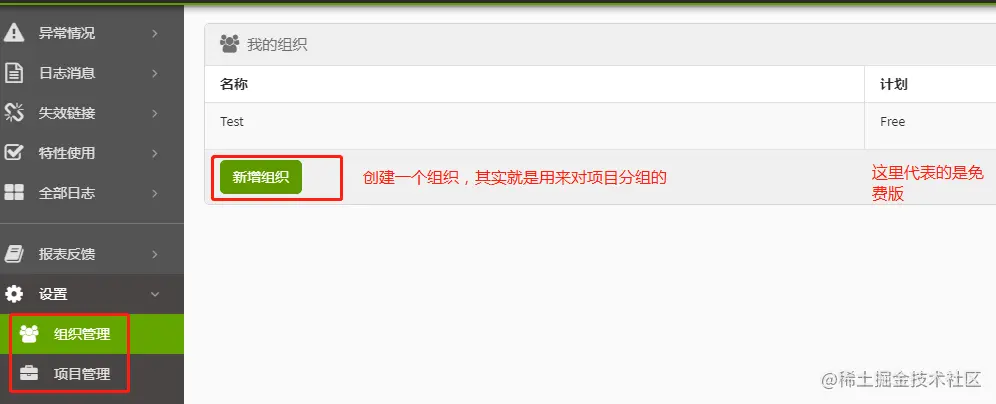 这种方式是把采集到的信息存储到官方的服务器上了,感觉不太好,一是日志信息其实对于一些项目来说很重要,二是要收费啊,免费版其实就是试用版,高级功能用不了,还要限制人数和项目数。