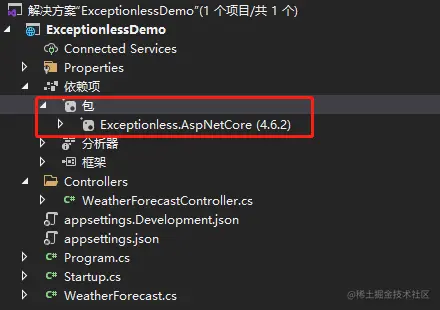 这里创建了一个WebAPI项目,引入Exceptionless.AspNetCore 即可;