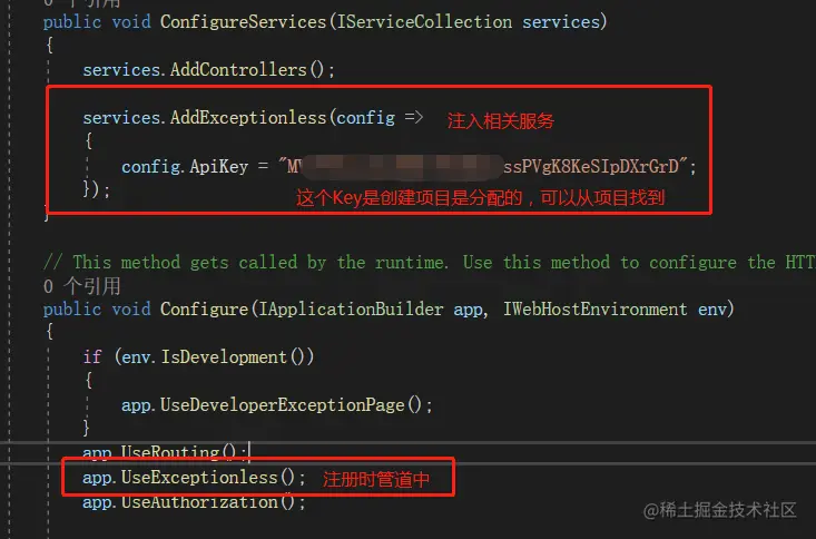 在Startup.cs文件中进行注入相关服务并注册到管道中,如下: