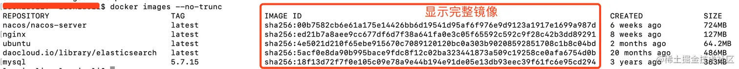 --no-trunc:显示完整的镜像信息