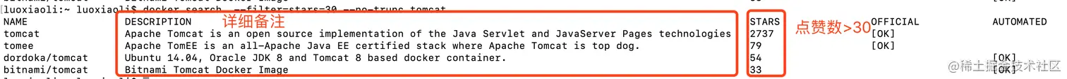 --filter=stars=3: 列出点赞数不小于指定数值的镜像