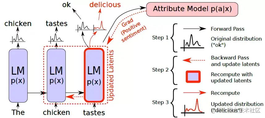 图8:PPLM “预测-反传-修正”的文本生成流程