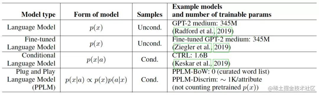 受到 CV 领域 PPGN(Plug and Play Generative Networks)的启发,通过插入属性判别模型来引导模型生成特定属性的文本的 PPLM 应运而生。PPLM 作者按照场景将语言模型进行如下分类:
