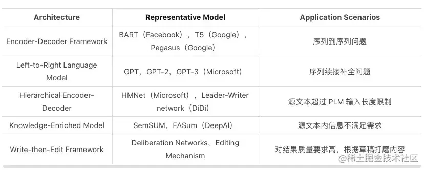 表1:各种文本生成模型结构及其代表性模型