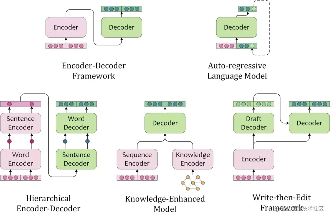 图1:各种文本生成模型结构图示