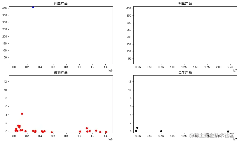 - 潜力款产品较多,要考虑是否应该投入营销资源去保持增长幅度,使得其转化为明显产品或金牛产品