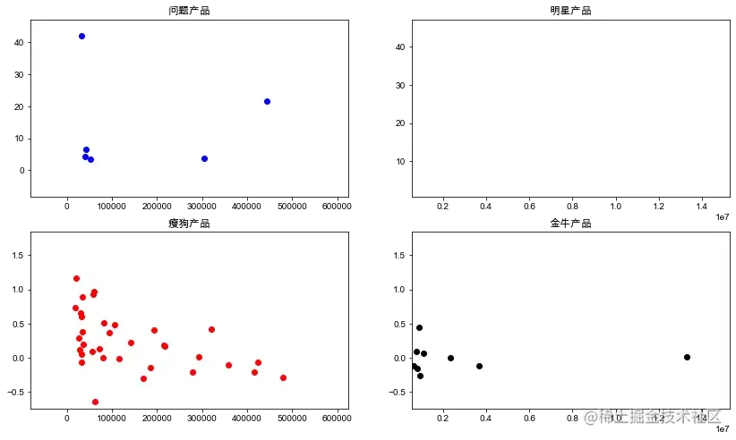 - 潜力款产品较多,要考虑是否应该投入更多的营销资源去保持增长幅度,使得其转化为明显产品或金牛产品