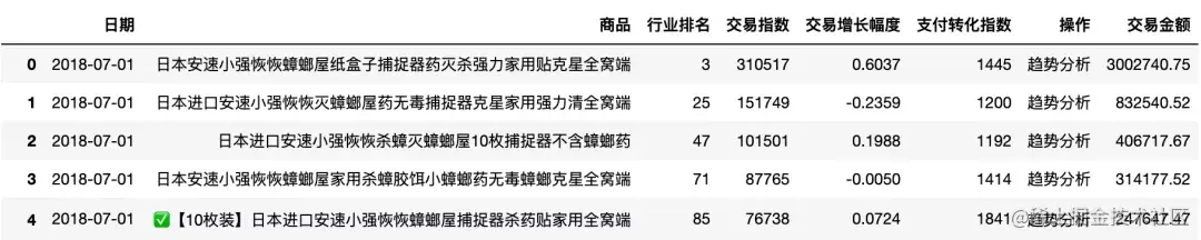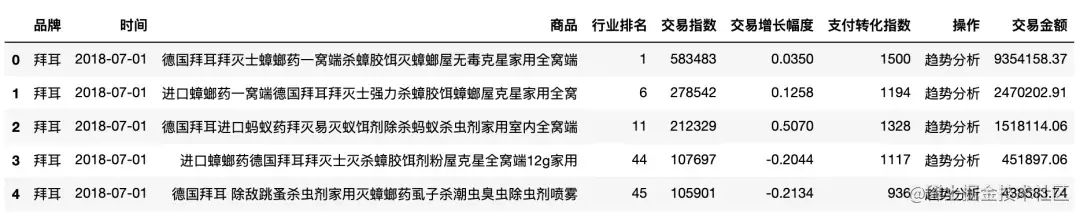 首先获取拜耳全店商品交易数据,数据样例如下图所示。